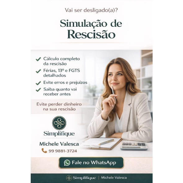 "Tenha o diagnóstico completo das suas verbas rescisórias: saldo de salário, aviso prévio, férias proporcionais, 13º e multa do FGTS. Com a minha consultoria, você terá a direção correta e a clareza total antes de assinar qualquer documento, garantindo que o ciclo se encerre com justiça e paz de espírito."